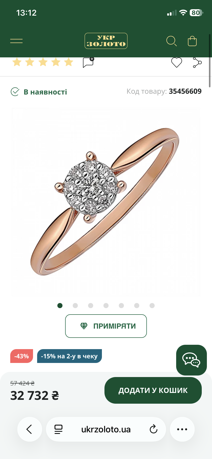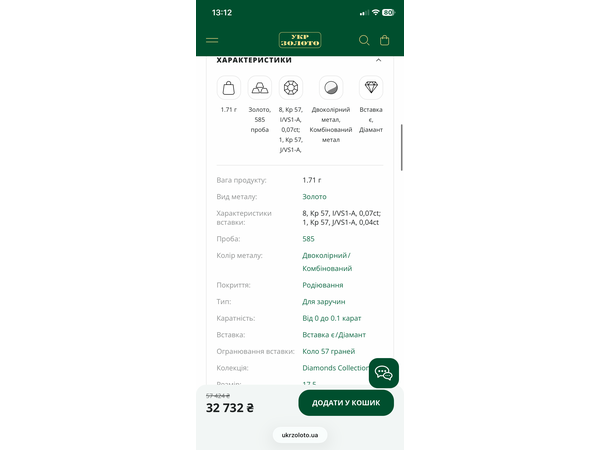 Виготовлено із золота проби 585, що має високу якість і міцність.