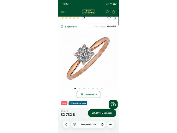 Каблучка з комбінованого золота з діамантом UZ10091995